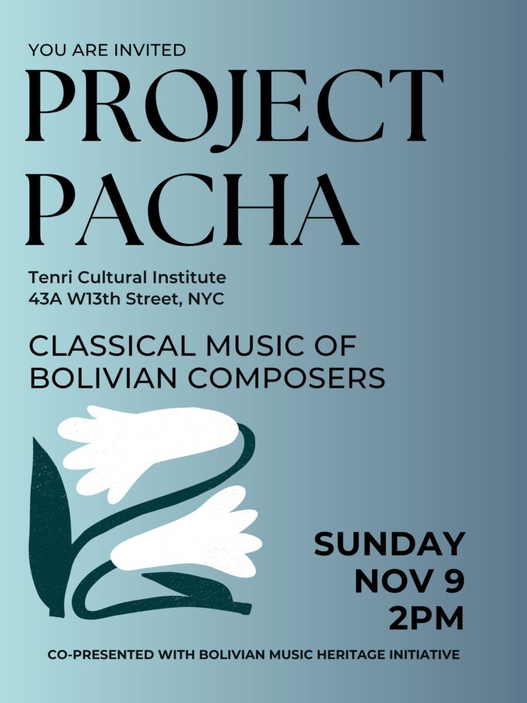 a new initiative celebrating and elevating the music of Bolivian composers. The event will share the project’s mission through a varied program of works by Bolivia’s most treasured composers, performed by select local musicians, and followed by an intimate reception.